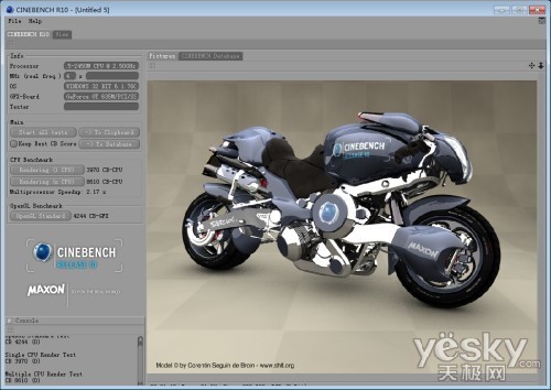 接下来我们使用CINEBENCH R10这款软件对其性能进行评估,通过这项测试能够准确的体现系统的性能指标,最终测试结果单核获得3970分,多核获得了8610分,CPU性能表现非常不错。