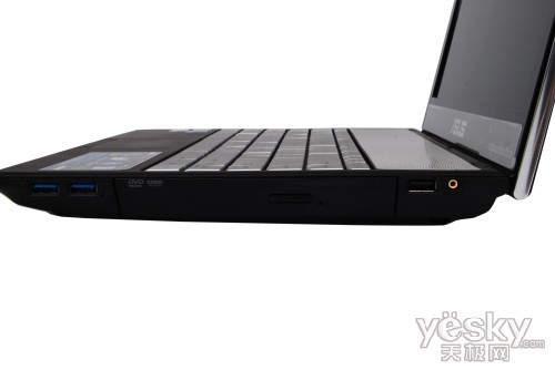 下面我们来看一下华硕N45SL的接口部分,机身接口还是比较齐全的。左侧接口有笔记本安全锁、电源适配器接口,还有RJ-45以太网口、D- Sub视频输出端口、HDMI高清输出接口和音频接口。右侧接口为2个USB3.0接口、1个USB2.0接口、一个外置低音炮接口和一台DVD刻录光 驱。USB3.0接口的传输速度要远远大于USB2.0接口,大大的提高了传输的效率。同时该机还支持USB charger+充电功能,可以再关机状态、休眠状态下,随时随地任何时间的为手机、MP3、ipad等移动设备充电,方便用户出行使用。