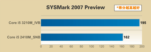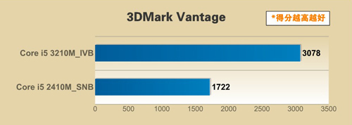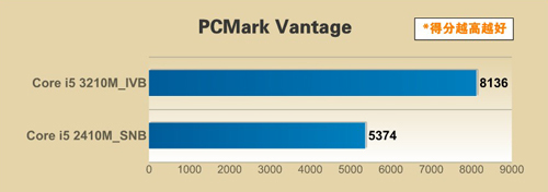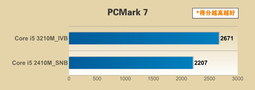 通过PCMark系列软件的测试,全新的i5-3210M性能都有明显提升,其中PCMark Vantage环节,整体提升51%,而PCMark 7环节,则提升21%。