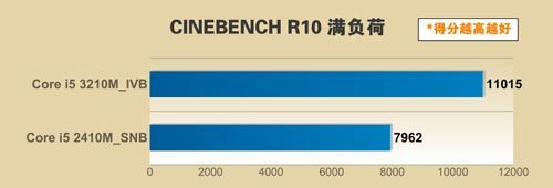 多线程方面,由于有全新制程和更高睿频的帮助,i5-3210M较i5-2410M有38%的性能提升。