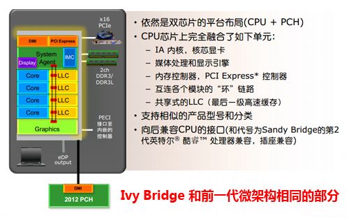IvyBridge的另一大改进就是增加了对于PCI-E 3.0的支持,其实这个在SandyBridge时代就出现了,只是这是第一次应用在移动平台上。这样一来主板上绝大部分PCI-E插槽都由CPU直联,减少了内存和芯片组的过渡,延迟更低、响应时间更短,性能也应此提升。
