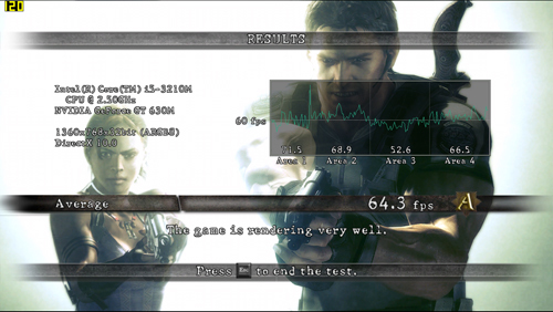 《生化危机5》的测试结果依然令人满意,在游戏过程中,画面十分流畅,最终的成绩也基本达到满帧。