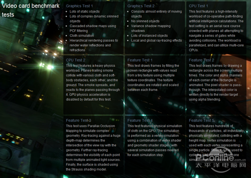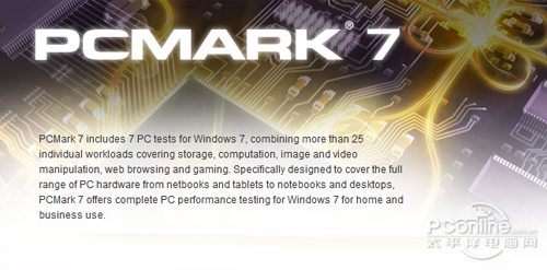 和历代前辈一样,PCMark 7也是一套针对PC系统进行综合性能分析的测试套装,不过这次需要操作系统是微软Windows 7,Windows Vista/XP完全被淘汰。PCMark 7包含七个不同的测试环节,由总共25个独立工作负载组成,涵盖了存储、计算、图像与视频处理、网络浏览、游戏等PC日常应用的方方面面。相比PCMark Vantage,PCMark 7的测试环境改变成了DX10,各种测试软件都进行了更新升级,更加符合当下用户的使用环境与习惯。