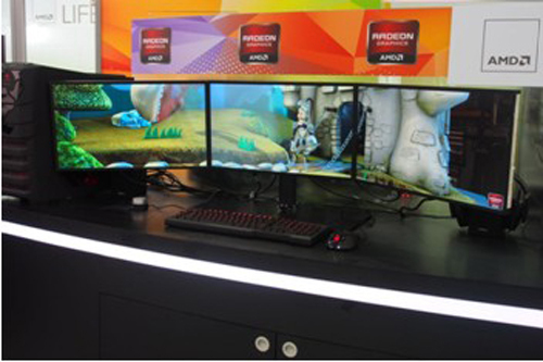 【PConline 资讯】Eyefinity技术一向是AMD专长,此次展会上,AMD展示了基于Eyefinity (宽域)2.0技术多联屏体验游戏的效果,这也是本届Computex展会上最大规模的多联屏演示!