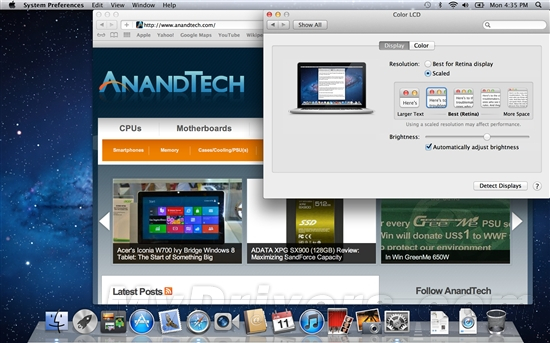 视网膜屏幕终于走入了MacBook Pro,15.4寸存面板分辨率高达惊人的2880×1800,是现在的整整四倍,不过我们都知道,小屏幕搭配超高分辨率就意味着像素点距非常小,相应地文字也会很小很小,导致阅读起来非常困难,苹果又是如何解决这个问题的呢?
