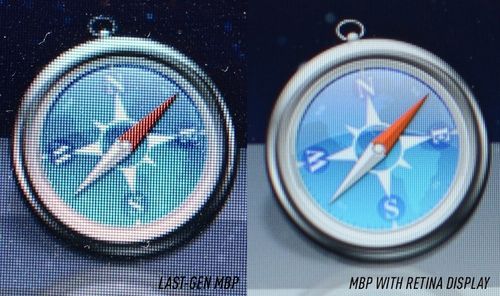 虽然小编觉得其实一张图就可以说明一切,不过还是详细地说一下吧。不知道Retina屏在较大尺寸方面是不是有良品率的问题,反正iMac现在毫无动静(小编真需要一个2880x1800以上分辨率的屏来推GAL)。 虽然新MacBook Pro的像素密度只有220PPI,但是经过国外友人瞪了几个小时屏幕证实,肉眼依然是无法看出像素点的。这么高的屏幕分辨率用起来是什么感觉呢?简单来 说,比如TextEdit的图标原来的分辨率是1024x1024的,图标上有文档中的文字。当它变成一个真正的图标那么大小以后,你依然能读到图标上的 文字,这就是Retina。