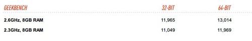 国外友人拿到了2部2012新版MacBook Pro,分别是2.3GHz+8GB的标配版以及2.6GHz+8GB的升级版。软件测试方面使用了GeekBench,得分最高的旧版MacBook Pro是配置有2.5GHz的i7处理器的17寸MacBook Pro,大约得到了10760分,而新版MacBook Pro则轻易超越了这个分数。
