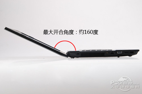华硕Pro4JS的最大开合角度约为160度,虽然没有像有些产品可以达到180度的开合角度,但是160度也已经绝对够用了。