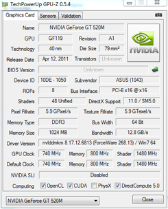 | 显卡 | NVIDIA Geforce GT 520M | |||||