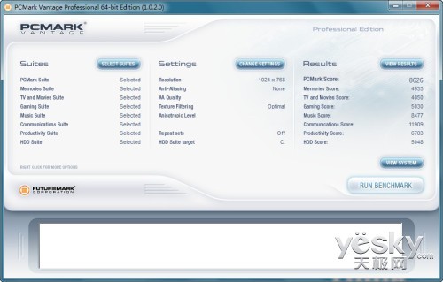 我们再来看看PCMarkVantage测试的成绩,总体8626分的结果,进一步证实了该机的性能主流,商务办公需求完全可以应对。