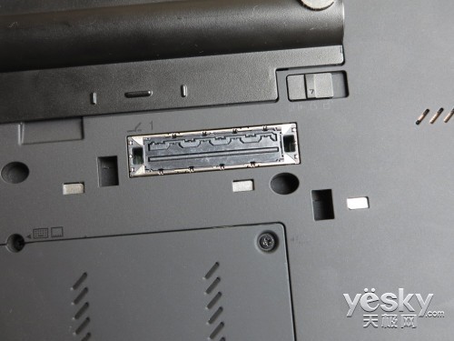 机身底部,依然采用了与顶盖同样的铝镁合金材质,保证了机身的坚固性。底部设置了扩展坞接口,搭配官方扩展底座,可以更好的提升机器的扩展性能。挡板下的内存位,使得用户日后可以非常方便的自行升级。