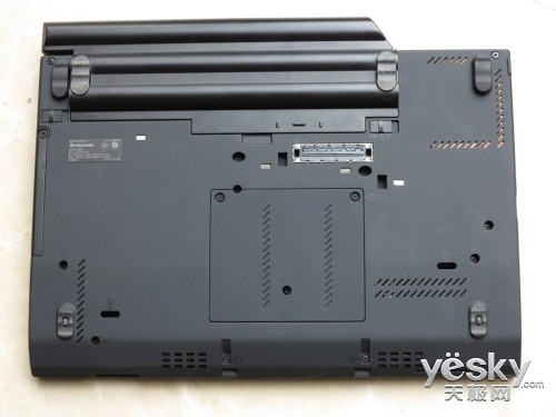 X230采用9芯大容量电池,后端超出了机身一部分,虽然整体看来影响美观,但超长的续航时间也为移动商务人士带来了更多便利。