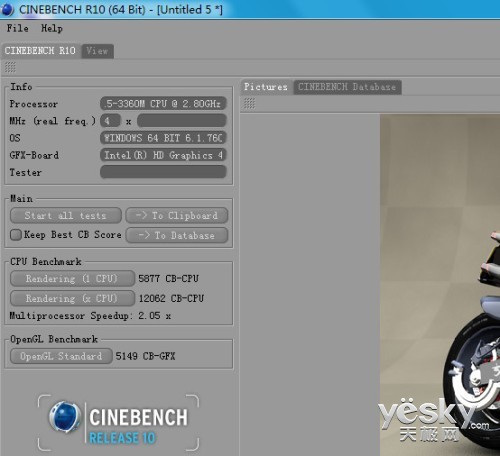 CINEBENCH R10能够对处理器的单核和多核性能给出直观的评分,通过CINEBENCH R10的测试,这颗酷睿 i5 3360M 处理器获得单核5877分,多核12062分的成绩,由此可见,其性能强劲,对商务人士的日常需求完全可以满足。