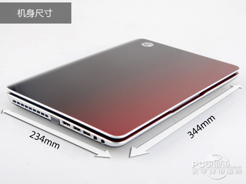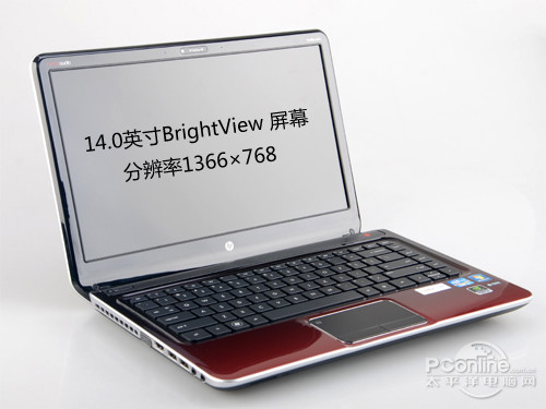 惠普dv4-5102tx整机采用复合材料打造而成,顶盖膜内漾印渐增变化的胭脂红设计,看上去带有一层神秘的气息非常时尚。内饰14寸镜面显示屏,最高分辩率为1366×768显示效果处于主流水准。