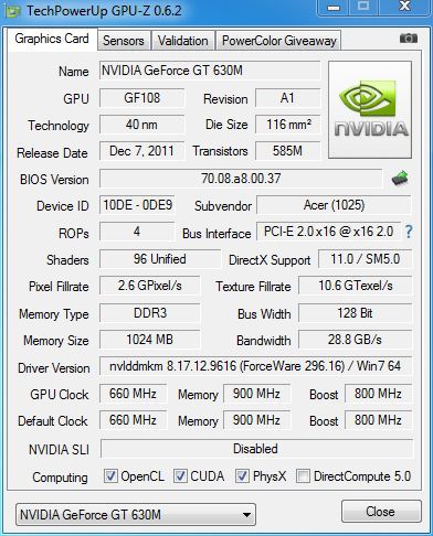 显卡 Intel HD Graphics 4000+NVIDIA GeForce GT 630M