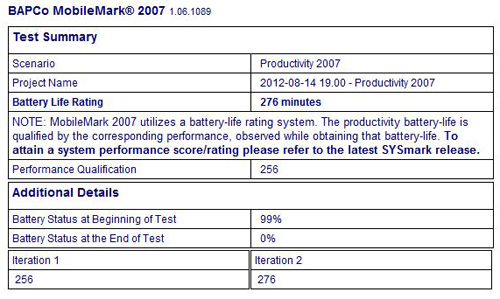 对于性能本,我家可能不太关注续航方面,但是E1-471G在Mobilemark测试下,达到276分钟,在日常使用中就可能超过5个小时,表现还是很不错的。如果是学生朋友,晚上宿舍断电了,也能坚持着看两场电影喽。