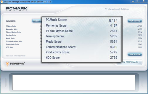 PCMark Vantage提供了更加易用的一键测试功能和桌面、移动、工作站平台统一化的测试脚本,是基于Windows系统测试软件。PCMark Vantage可以衡量各种类型PC的综合性能。从多媒体家庭娱乐系统到笔记本,从专业工作站到高端游戏平台,无论是在专业人士手中,还是属于普通用户,都能通过PCMark Vantage了解系统性能,测试内容可以分为处理器测试、图形测试、硬盘测试。