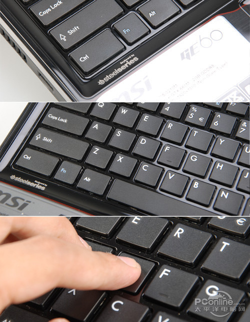 微星GE60也采用了SteelSeries专业键盘,官方消息这款键盘是专为游戏设计,键盘的耐用度比普通键盘要高,因为进行游戏时会发生误触Windows功能键,所以设计者将Windows功能键移到空格键的右侧。这款键盘的回馈力很强,键帽表面有微微的下凹的弧度,手感还算舒服。不过还是不能比独立的游戏键盘相比。