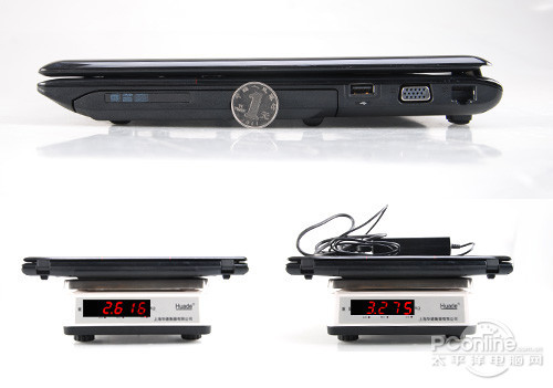 从接口位置分布来说,设计者充分考虑了大部分人的使用习惯,并且将使用率较低的DVD光驱放到靠近用户右手的位置,这样在连接鼠标时能减少对手的干扰。接口之间空间充分,没有出现相互拥挤的情况。