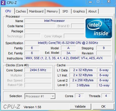 微星GE60采用了intel Core I5-3210M双核四线程处理器,主频2.5GHz,支持睿频加速到3.1GHz。这是今年新发布的Ivy bridge构架处理器,融合了HD4000核心显卡,处理器性能相当于上一代的双核i7。