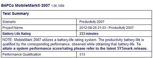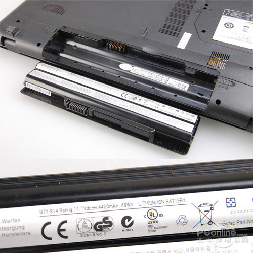 或许是因为成本的缘故,微星GE60并没有像GT60那样选用9芯的电池,它标配了一块49Wh的6芯锂电池,在随后的MoblieMark2007续航测试中,它的续航时间为233分钟,折合约4小时,表现还是不错的。对于性能型的影音本来说,续航能力并不是很重要,不必太过纠结续航的时长。