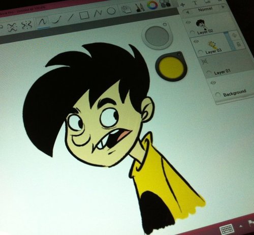 后来,朋友推荐了我一款名为SketchBook的画图应用,虽然它只具备简单的绘图功能,但好处是它可以在Win8应用商店中就可以下载到。不得不说, 这款软件真的非常不错,特别是在绘制线条时,使用了Wacom技术的1024级压感效果非常真实自然,堪称完美。而且由于在Surface Pro上使用电磁笔时,笔会与屏幕形成回路,人体触控将会失效,这样就不会影响我画图的效果了,就像我使用手绘板的感觉一样。