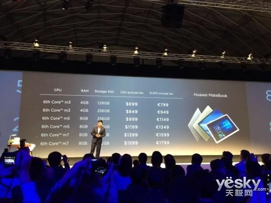 在配置方面,MateBook搭载了第六代Core M处理器,内存分为4GB和8GB两个版本,存储空间则为128GB/256GB/512GB SSD三个版本。根据配置不同,售价自然也存在差异。此次在发布会上,华为对不同配置的产品以及配件按美元价格和欧元价格进行公布,如果动心了,不妨提前 准备。