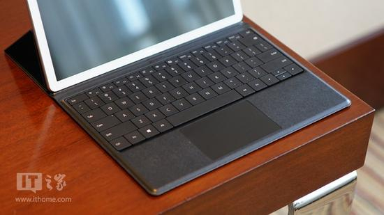 MateBook的键盘按键间距非常窄,这和多出来的键帽部分有很大关系,键盘单个按键的面积足够大,但这确实模糊了按键之间的区分度,不过你尝试着盲打一段就会发现,习惯之后误触几率并不高。MateBook键盘的键程在1.5mm左右,但回馈还是不如Surface Pro 4键盘来的清晰,手感略柔和;触控板面积够大,表面的涂层也让手指滑动起来感觉够爽快,但指针移动效果不如Surface Pro 4,同步性还有待进一步提升;单击或右击手感清脆,反弹迅捷;MateBook键盘也带有背光,提供四级亮度调节,具备防泼溅能力。