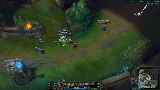HD520的性能在1080P特效全开(抗锯齿关)的画面设置下帧数基本能保持在78帧左右,打团时帧数还会稍微走低,对线基本上是78帧,打开抗锯齿后就只能有60帧的表现了。