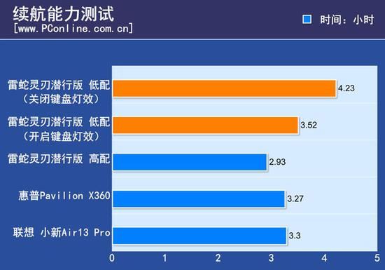 在屏幕亮度调至50%并且键盘灯光全开的条件下,雷蛇灵刃潜行版3h 31min 0s的续航能力还算令人满意。同时,由于采用了i5 6200U,TPD较之i7更低,所以续航也比其高配版要久一些。对于商务超级本来说,这是非常重要的。