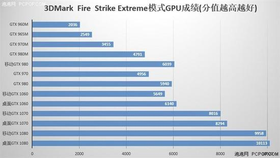 通过3DMark软件跑分性能图来看,我们可以看出GTX 10独显的性能提升确实非常给力,同为移动端独显,GTX 1060的跑分数据几乎接近上代GTX 980M的水平,实际测得的游戏性能与跑分表现相当,基本可以代表实际游戏性能。