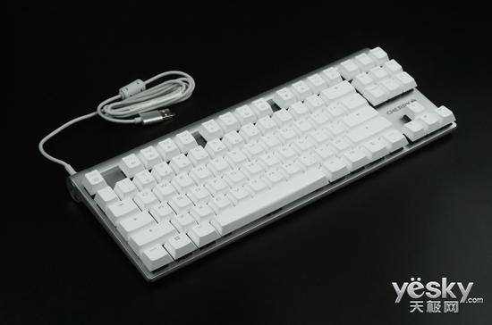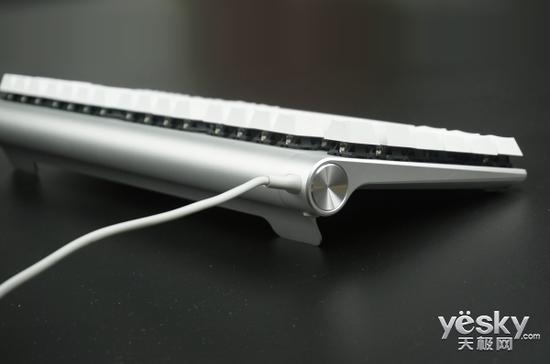 MX Board8.0采用的白色橡胶材质包裹线缆与银色USB金属插头,插头上也附带了镭雕的樱桃LOGO,看上去很有“苹果”味。
