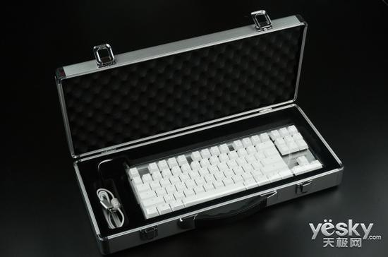 打开军火箱,用于固定键盘的缓冲棉将键盘以及线缆牢牢固定住,同时箱子的顶部也布满了鸡蛋孔缓冲棉,能够有效保护键盘不被刮伤或者磨损。