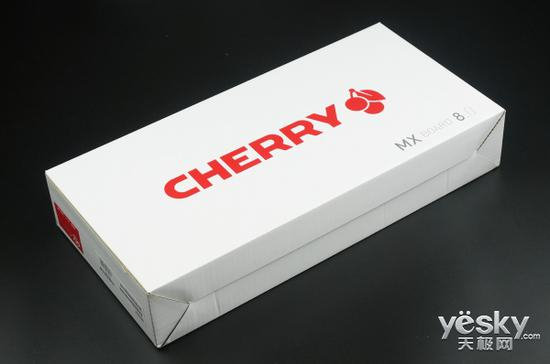 虽然采用了金属材质的军火箱包装,不过Cherry仍然为MX Board8.0增加了一个纸盒作为外包装,整个白色纸盒正面只印有红色的Cherry LOGO和灰色的MX Board8.0型号字样,看上去非常简洁并且有逼格,纸盒也能够防止军火箱的金属材质被刮花。