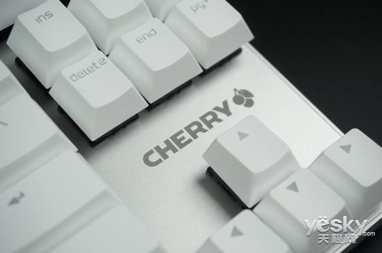 方向键上有镭雕的Cherry LOGO,并非贴个贴纸草草了事,细节和设计感方面一直是Cherry的强项。