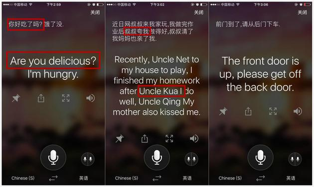 这个翻译器“聪明”的地方在于,它不懂的,就会老老实实地用拼音来表达。但是“叔叔夸我”这个短句不能算非常困难的语言,在输入识别、语音识别里却能出现多个不同翻译版本,这也只能说明这个翻译器的翻译情况时好时坏。
