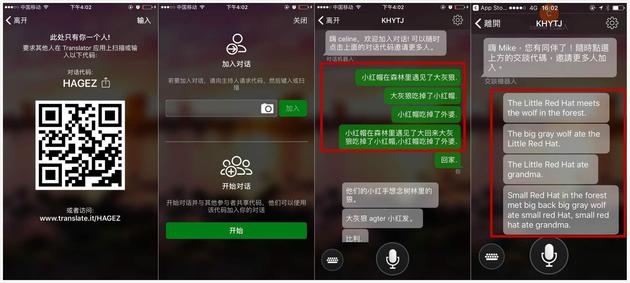 在使用这个功能时,你可以作为发起人,生成一个二维码或者口令,其他人加入聊天室便可。另外,在进入聊天室之前,用户需要选择自己的语言,这样别人的发言将能得到实时翻译。