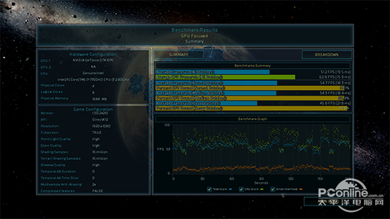 凭借着庞大的游戏场景以及非常细腻的画面制作,《奇点灰烬》自发布以来就受到了广大玩家的青睐,同样它也被冠以硬件杀手的称号,这从它的推荐硬件配置Intel Core i5处理器、16 GB内存、NVIDIA GTX 970 / AMD R9 390独显就能看的出。此次测试我们将它的画质效果设置为最高,从BenchMark测试结果来看,未来人类S5的平均帧数为52帧,实际画面流畅度非常不错。