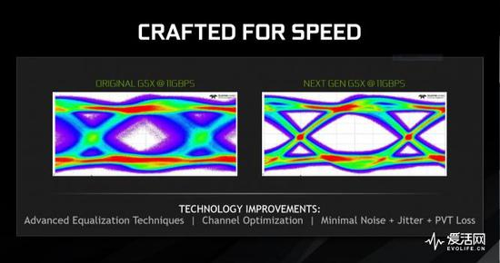 不过真正踩下油门踏板的是GDDR5X,早在去年GTX 1080带着GDDR5X发布之时,镁光就曾经表态GDDR5X起始频率可以在10Gbps至12Gbps之间,如果经过一定程度优化,这个数值甚至可以达到14Gbps至16Gbps,正好是GDDR5最高频率的2倍。GTX 1080 Ti 上GDDR5X工艺无疑被进一步提升,在减少了信噪比、漏电、抖动、温度的困扰后,显存频率从TITAN X Pascal时代的10Gbps飙升至11Gbps。与此同时,GTX 1080和GTX 1060也分别获得了GDDR5X 11Gbps版本和GDDR5 9Gbps版本的速度加成。这是NVIDIA在GDDR5X征途上的第二步,只要HBM成本不下,对手不存在威胁,NVIDIA很有可能会继续压榨GDDR5X直至极限。