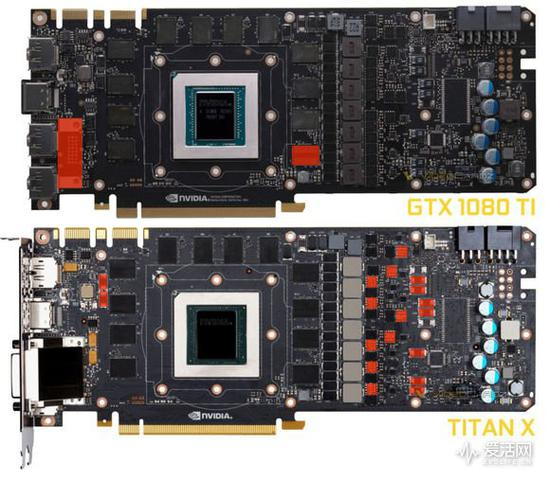 GTX 1080 Ti使用了TITAN X Pascal相同的PG611板卡,但GTX 1080 Ti不仅增加了多处MOS,并采用双FET 7相供电,而非GTX 1080的5+1供电方式,因此无论对比TITAN X还是GTX 1080,GTX 1080 Ti的供电都堪称豪华。