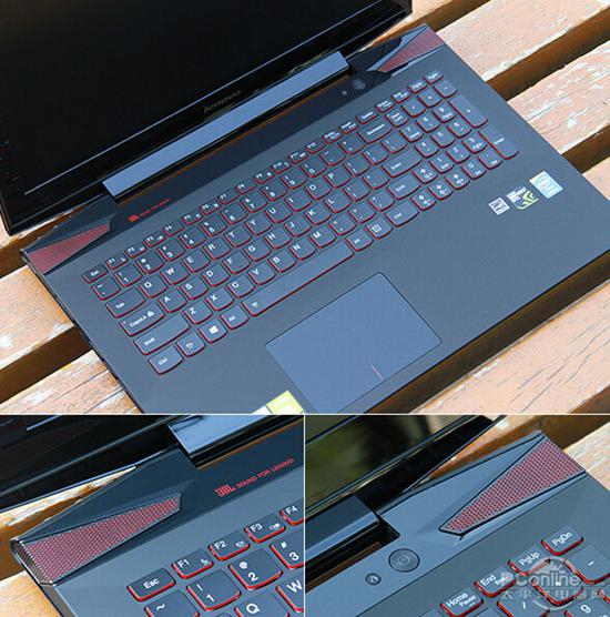 整个C面采用了黑色为主色,红色作为点缀。黑红双色键盘非常引人注目,键盘别致美观的同时依旧延续了充分的易用性,高触敏设计带来了舒适的操作手感,通过实际操作能够直观的感受到键程更长、回馈力也有所加强。整个键盘采用了下沉式设计,使用起来减少了疲劳感。触控板采用了简约的一体式设计,左右按键由红色的短线分开,宽大的设计让日常操作更为便捷。