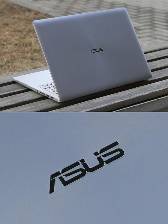 华硕 ZenBook Pro机身采用了金属拉丝工艺,银灰色的配色金属感十足。加上轻薄的设计让我们不免想到MacBook Pro的造型。机身正面设计了3个指示灯,用户可以根据指示灯来判断电脑的运行状况。顶盖依旧采用了经典的同心圆设计,品牌感十足,也不容易沾染指纹。
