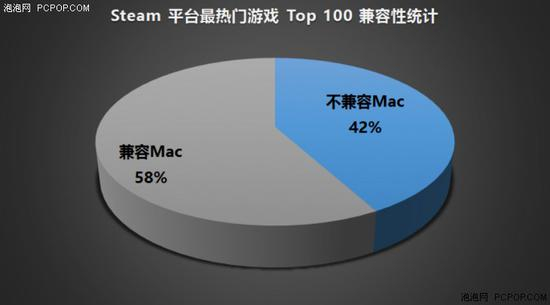 暂且不讨论 Mac 硬件上的问题,单单只是游戏的数量,Mac 相比 Windows 就差了不是一两个数量级,以 Steam 游戏库为例,热门游戏排行榜前100名中,有42款游戏没有 Mac 版,剩下的58款中很少有大作出现,像我们熟知的《古墓丽影》、《刺客信条》、《生化危机》等游戏都没有适配 Mac。