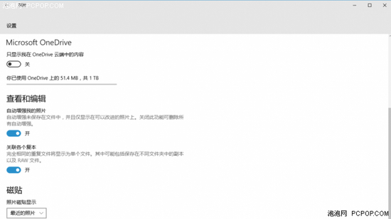 不过 Windows 10 中内建的照片应用还是比较良心的,它能自动读取 OneDrive 中的照片,相信如果你有 Windows 手机也能像 iPhone 一样享受同步功能,相比 iCloud 来说,它标配的 1TB 免费空间相当良心,而我关掉它的原因是我没有 Windows 手机。。。。。。