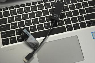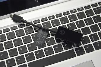 此外,HP EliteBook x360还为用户标配了两个USB-C转换线,分别转换为VGA接口和网线接口。