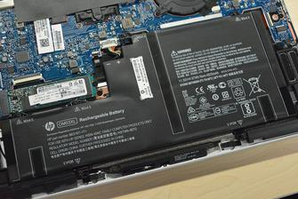 对于商务轻薄本来说,续航想必是小伙伴们最关心的问题,下面我们就重点来说说HP EliteBook x360的续航,我们在拆机测试发现,该机电池模块十分“庞大”,几乎是整个笔记本面积的一半,电池面积比主板还要大。