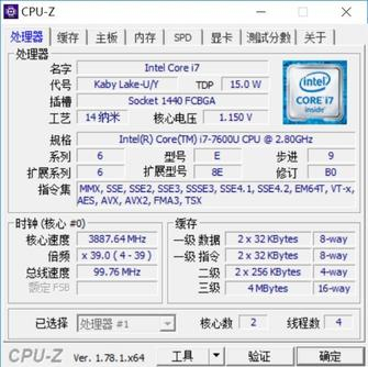 我们通过CPU-Z来测试来展示i7-7600U的性能
