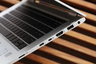 扩展性方面,HP EliteBook x360也是极尽周全,机身左侧接口按键设计包含 开机键、USB 3.0接口、耳机接口、音量调节按键、SC智能卡读卡器。值得一提的是,SC智能卡读卡器是企业专用的,一般个人用户用不到,这是为了确保企业员工用机安全的身份识别系统。而机身右侧接口按键设计则包含电源接口、USB 3.0接口、HDMI接口、笔记本锁口、USB-C接口、以及micro SD卡插槽。