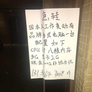 17日晚上,家住南湖国际社区的曹先生回家时发现大门口贴了一张转让二手电脑的手写广告,cpUi7八核、内存8G、显卡2G,他觉得还不错,便拨打了广告上留的电话号码,不一会儿,一个20多岁的女子提着主机袋子和显示器箱子就到了楼下。