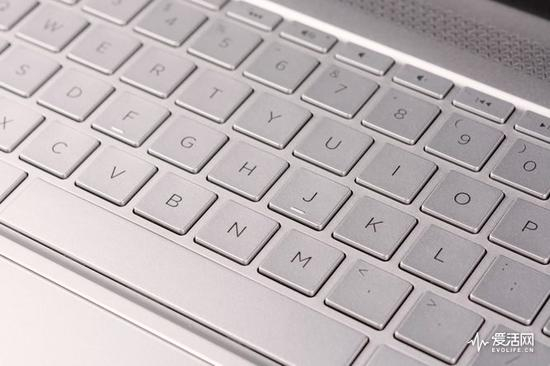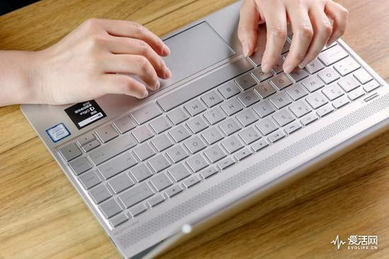与屏幕两侧在边框相呼应的是,笔记本C面键盘也进行了边到边设计,惠普把采用B&O技术的扬声器由原来的两侧移动到了C面上方。也正因为如此,上一代ENVY 13需要在Fn搭配下才能使用的pg up、pg dn、end、home按键被独立出来。